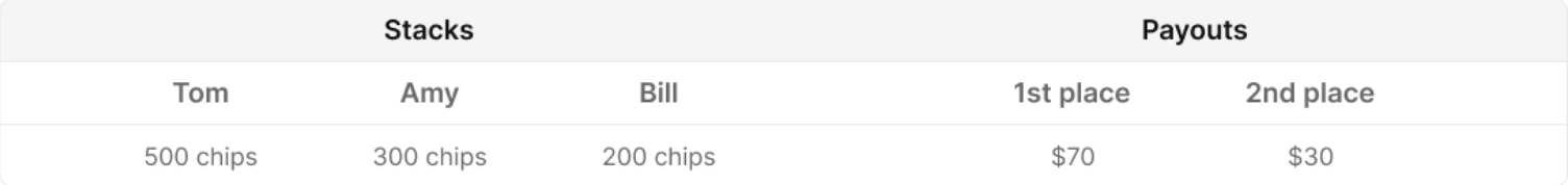 - Example: Tom, Amy and Bill play 3max SnG.