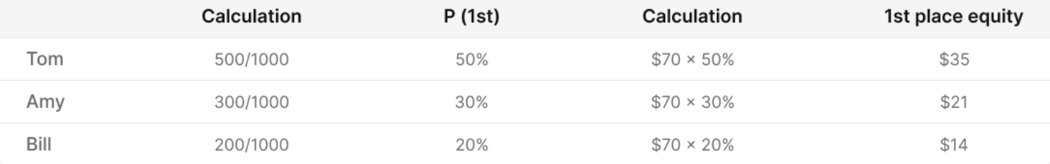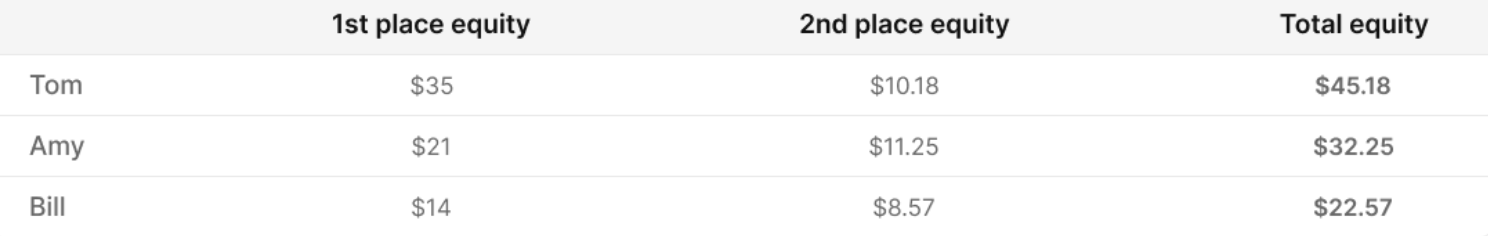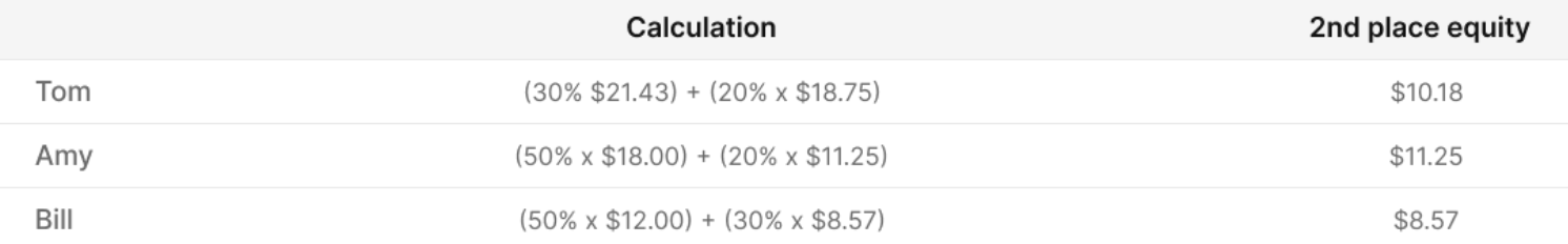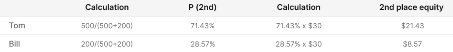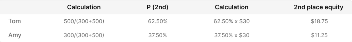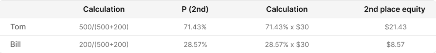 Now we need to calculate their equity for the 2nd place. This step is more complicated, but it can still be done manually.