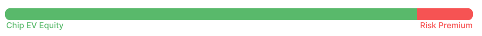 Simply put, winning chips are worth less than losing ones. This uneven risk/reward ratio creates a “risk premium” effect. You risk more than direct settlement in a chip EV environment would suggest.